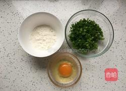 3.粘玉米浆加入清水,鸡蛋,面粉,葱花,盐,鸡精搅匀。